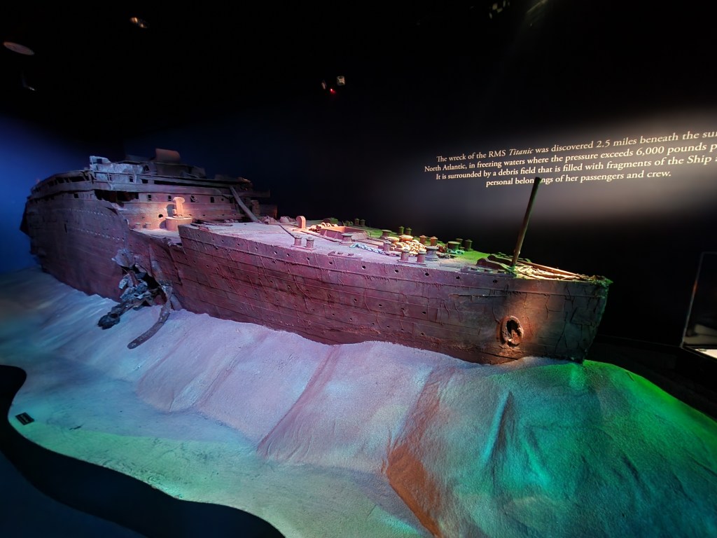 Since I was about 11, I’ve been obsessed with learning about the Titanic. Pretty sure it was the movie and it has also contributed to my fear of cruise ships on the open ocean. I remember getting several books about the ship. Then, as more documentaries were made, I watched nearly all of them. Especially the ones that were released during the 100th anniversary of the sinking. Not sure how the obsession started, but it’s a subject I can have hours long conversations about with all the facts I’ve retained. The first time I ever saw the Titanic exhibit was when we passed through Chicago on a family road trip and I was happy to have my hubby with me so I could share my knowledge with him.